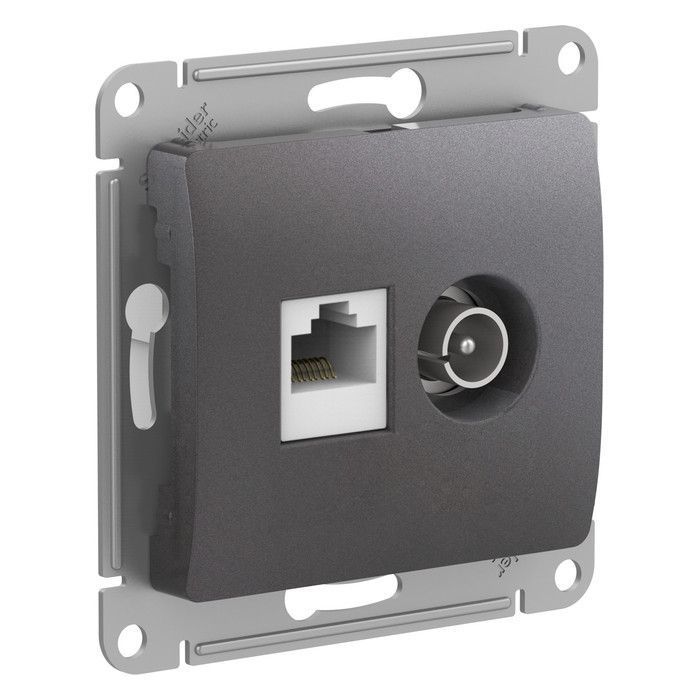 Розетка Schneider Electric GLOSSA предназначена для подключения телевизора, компьютера и сетевого кабеля RJ45. Она имеет скрытое монтажное исполнение, что позволяет сохранить чистоту и порядок в интерьере помещения. Розетка выполнена в стильном графитовом цвете, который прекрасно сочетается с современным дизайном. Надежное качество и удобство использования делают эту розетку идеальным выбором для вашего дома или офиса.