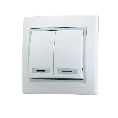 Выключатель двойной с подсветкой. Особенности заключаются в европейском дизайне. в повышенной безопасности негорючего поликарбонатного ПК-пластика. в более прочном и устойчивом к механическому воздействию покрытии. в простом монтаже и демонтаже.Напряже