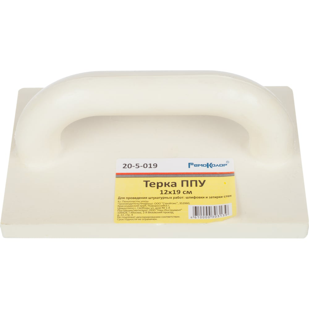 Пенополиуретановая терка 120 х 190 мм РемоКолор 20-5-019 находит применение при оштукатуривании стен, а также выполнении иных работ. Прочное основание и удобная рукоятка делают работу с инструментом более простой и удобной.
