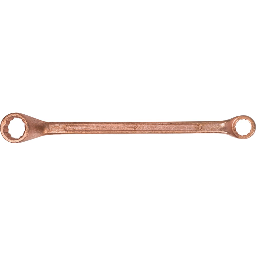 Двусторонний накидной ключ предназначен для работ с резьбовыми соединениями в процессе ремонтных и монтажных работ. Инструмент выполнен из высококачественной стали, благодаря чему отличается прочностью и долговечностью. Омедненное покрытие обладает повышенной устойчивостью к высокотемпературному воздействию случайной искры. Ключ может применяться на предприятиях с наличием потенциально опасных сред, а также в быту.
