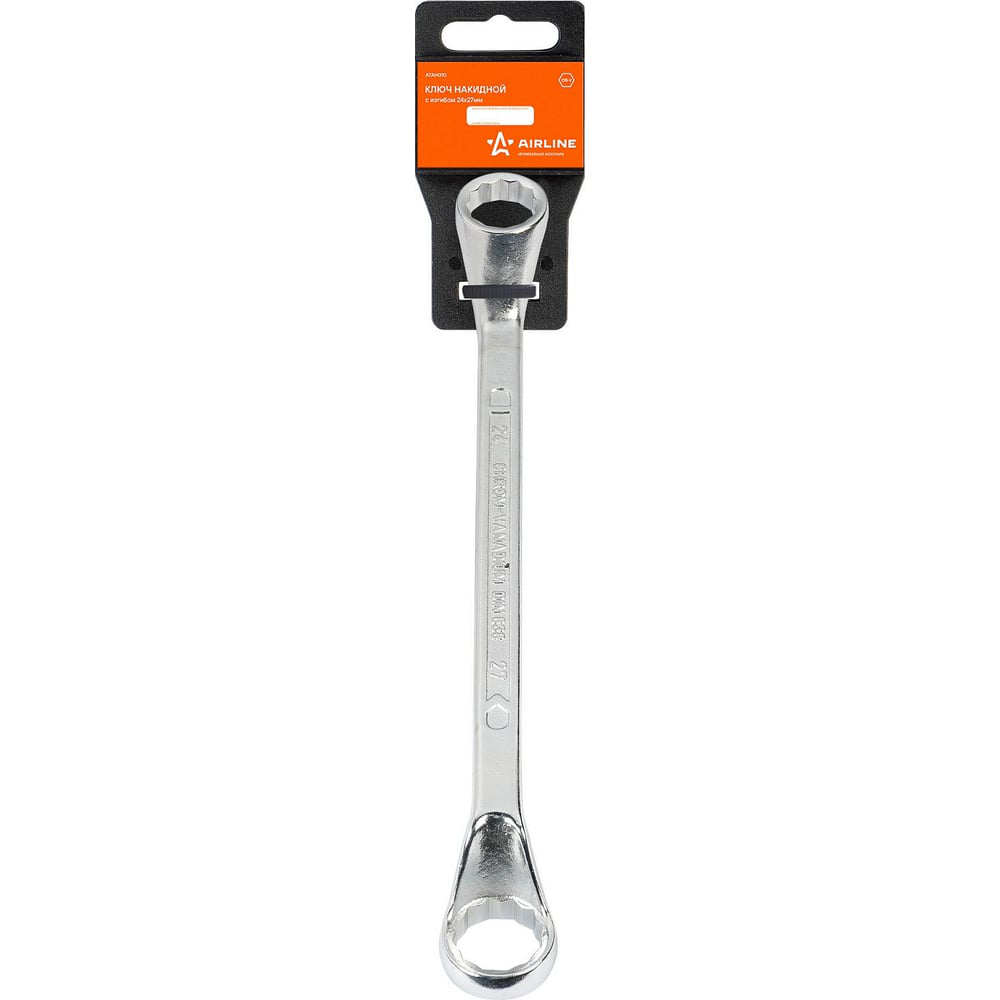 Накидной ключ Airline с изгибом, 24x27 мм, пластиковый подвес ATAH010 предназначен для работ с резьбовыми соединениями. Ключ изготовлен из высококачественной хромованадиевой стали. Тело ключа изготовлено методом горячей ковки, что придаёт ему высокую прочность и долговечность. Финишное хромированное покрытие защищает ключ от воздействия коррозии, делает его более износостойким и легко очищается от загрязнений. Продуманный профиль накидной части ключа смещает пятно контакта с ребра грани на её поверхность, что предотвращает повреждение болтов и гаек даже при самых высоких нагрузках. Эргономичный профиль рукоятки ключа позволяет развивать большее усилие без риска повреждения кистей рук.