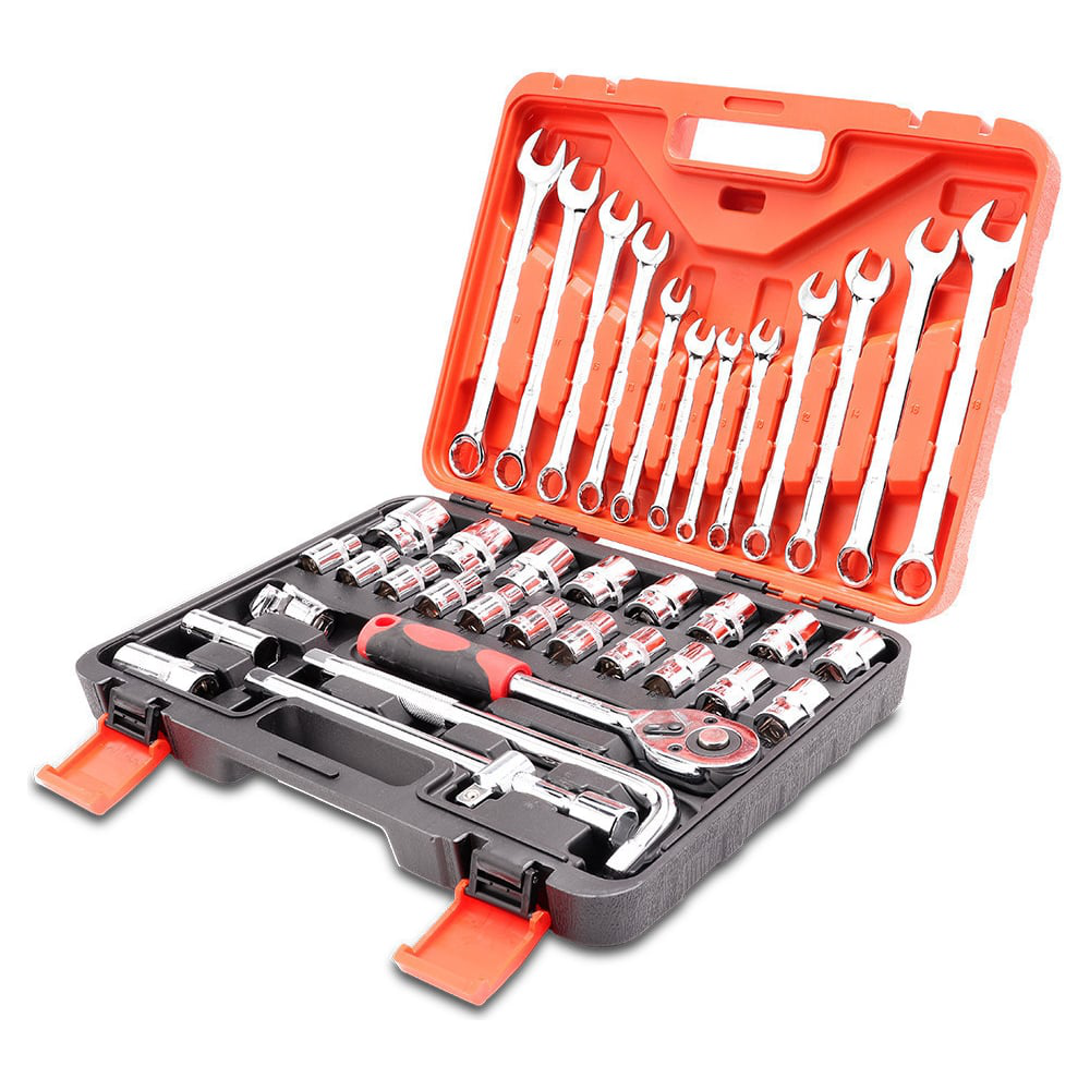 Набор инструментов GOODKING 38 предметов, 1/2 K-10038 — это прекрасный комплект предметов для любого мужчины. Такой многофункциональный набор должен быть у каждого автомобилиста. С его помощью Вы всегда сможете решить любую задачу и успешно отремонтировать автомобиль самостоятельно. Он отлично подойдет как автолюбителям, так и профессиональным мастерам. В наборе инструментов Вы получаете 38 предметов. В его комплектации есть комбинированные ключи, торцевые головки, трещотка, карданный шарнир и др. Благодаря инструментам сразу в нескольких размерах Вы получаете полезный набор, с которым можно работать с разными автомобилями. Каждый предмет отличается высоким качеством и прочностью. Для их изготовления используется хромированная сталь. Все инструменты при этом остаются легкими и комфортными для работы, а прорезиненные ручки защитят от выскальзывания из рук. Автомобильный набор с трещоткой GOODKING K-10038 идет вместе с удобным кейсом. Он изготовлен из крепкого пластика и имеет ручки. Вы всегда сможете брать инструменты с собой и безопасно их хранить.