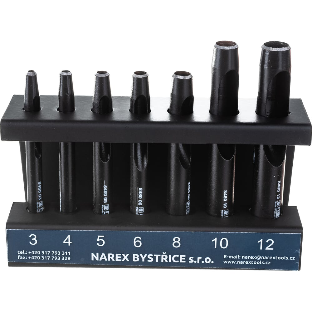 Набор из 7 пробойников в стенде NAREX 854800 включает в себя большое количество приспособлений различных диаметров, которые предназначены для вырезания прокладок из различных материалов, таких как: резина, пробка и пр. Каждый компонент выполнен из углеродистой стали и дополнительно термообработан.