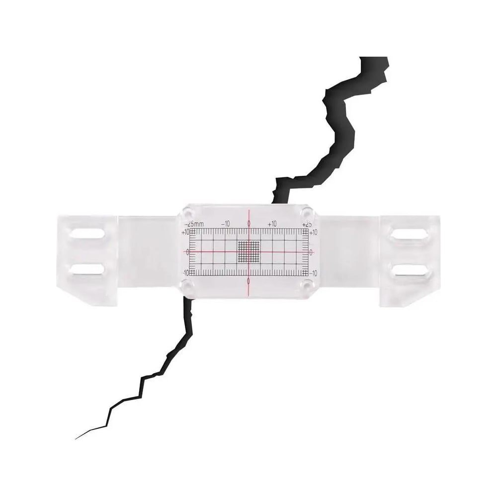 Несущая способность и долговечность эксплуатации бетонных конструкций во многом зависит от наличия в них трещин и динамики их развития. Сами трещины являются распространенным явлением и представляют опасность для эксплуатации только если ширина их раскрытия превышает допустимые величины. Применение маяков описано в EN 1992-1-1-2011 - Проектирование железобетонных конструкций. Часть 1-1. Общие правила и правила для зданий. К основным причинам образования трещин относятся: усадка свежего бетона, деформация опор, чрезмерные нагрузки, мороз (особенно с переходом через ноль), коррозия арматуры. Трещиномер помогает контролировать процесс развития трещин в вертикальном и горизонтальном направлении. Трещиномер состоит из двух прозрачных пластмассовых пластин, перекрывающих друг друга по длине. Нижняя пластина откалибрована в миллиметрах для горизонтальных (от -20 до +20 мм) и вертикальных (от -10 до +10 мм) перемещений, а верхняя пластина имеет красный крестовой указатель. Изначальное положение пластин относительно друг друга находится на нуле. Изменения трещины двигают указатель по шкале определяя временную динамику ее развития.
