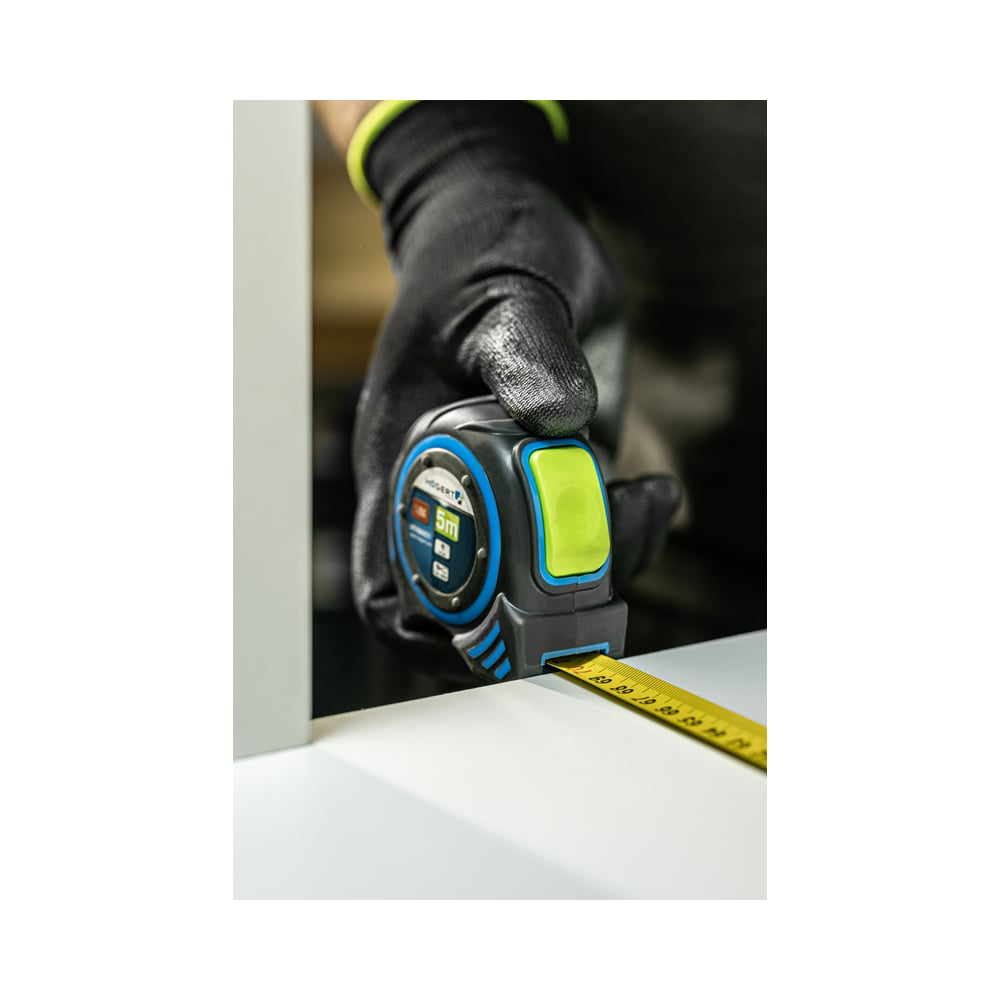HOEGERT TECHNIK Измерительная рулетка 5м 19мм автостоп нейлон с магнитом HT4M401: Точные измерения с максимальным удобством! Измерительная рулетка HOEGERT TECHNIK HT4M401 – это компактный и универсальный инструмент, предназначенный для точных измерений при ремонтных и отделочных работах, на строительных площадках и в быту. Соответствует Директиве ЕС по измерительным приборам (MID), гарантируя высокую точность.Преимущества измерительной рулетки:Высокая точность: Соответствует Директиве ЕС по измерительным приборам (MID) и имеет класс точности II.Прочность и долговечность: Стальная лента толщиной 0,12 мм покрыта нейлоном, что повышает ее прочность и устойчивость к истиранию.Автоматическая блокировка: Автоматический механизм блокировки выдвинутой ленты облегчает измерение, освобождается при нажатии кнопки.Удобство измерений: Лента с надписью с двух сторон (горизонтальное и вертикальное исполнение)Магнитный крюк: Крепление типа крюк с двумя встроенными магнитами позволяет прикрепить ленту непосредственно к стальной поверхности.Усиленное крепление крюка: Крепление крюка усилено двумя заклепками, обеспечивая надежную фиксацию.Эргономичный дизайн: Элементы корпуса изготовлены из противоскользящего материала, обеспечивающего удобный захват и комфортную работу.HOEGERT TECHNIK HT4M401 - это надежный, точный и удобный инструмент, который станет незаменимым помощником в любых измерительных работах!