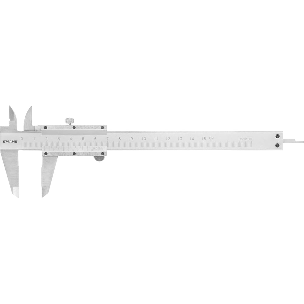Штангенциркуль ШЦ-1-150 0,05 губ. 40мм SHAHE – универсальное измерительное устройство первого типа, предназначенное для совершения измерений длин, глубин отверстий и внутренних и наружных диаметров с высокой точностью. Состоит из линейки-штанги и неподвижной губки, имеет две шкалы: на нониусной раме и на штанге. Принцип работы устройства механический, основан на закреплении объекта путем перемещения рамки. Детали сделаны из высококачественного сплава, поэтому срок службы ничем не ограничен.Перед использованием рекомендуем проверить инструмент на наличие повреждений, также очистить его от различных загрязнений. Принцип работы прибора очень прост и интуитивно понятен. Необходимо расположить измеряемый предмет между губками штангенциркуля, зафиксировать их положение стопорным винтом, снять показания двух шкал.Благодаря простому устройству и универсальности нониусный штангенциркуль широко применяется для разных целей. Инструмент используется в сферах, где необходимо проводить точные измерения: машиностроение, различные производства, ремонт оборудования и контроль соответствия размеров эталону.