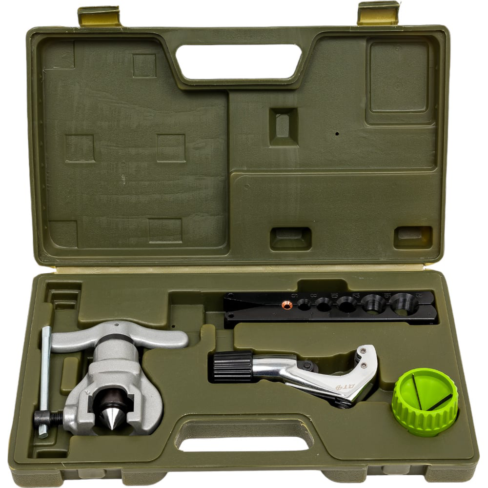 Набор для развальцовки тормозных трубок, профессиональный Дело Техники 820314 включает в себя необходимый инструмент, который подойдет для резки и развальцовки труб из меди, латуни, алюминия и нержавеющей стали. Комплект поставляется в прочном кейсе. Используется для развальцовки труб диаметром 6, 8, 10, 12, 16, 19 мм. Труборез справляется с диаметрами 5-38 мм.