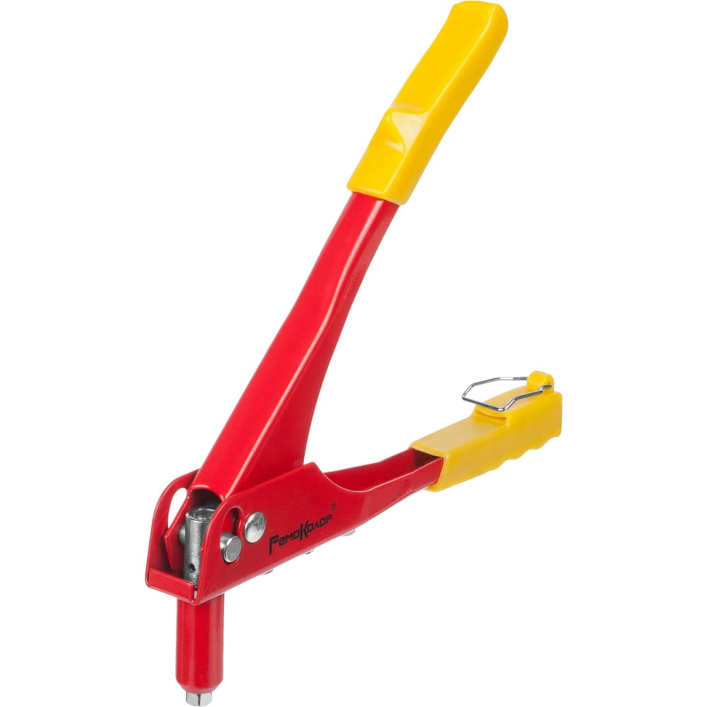Механический заклепочник РемоКолор насадки 2,4мм, 3,2мм, 4,0мм, 4,8мм, ключ для насадок, 26-0-025 оснащен пружиной для автоматического выталкивания заклепки. Быстросъемные насадки позволяют работать с заклепками диаметра: 2,4 мм, 3,2 мм, 4,0 мм, 4,8 мм. Пластиковое покрытие рукояток обеспечивает удобство в работе. Насадки расположены на рукоятке заклепочника.