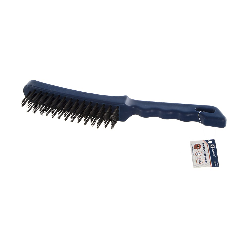 Кордщетка (ручная, 4-рядная, стальная, 280 мм) КОБАЛЬТ 248-658 выполнена из пластика со стальной щетиной. Благодаря жесткости металла и удобной пластиковой рукоятке повышается скорость и качество снятия старой краски и удаления ржавчины с металлических поверхностей.