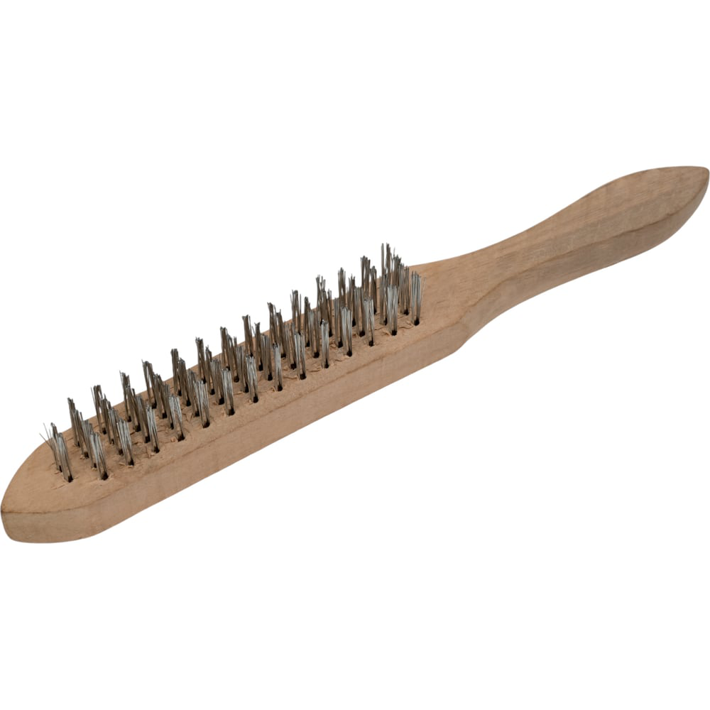 Щетка с металлическим ворсом VOREL 4 ряда деревянная ручка 06940