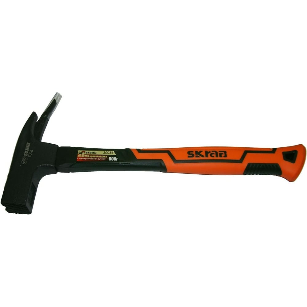 Молоток кровельщика SKRAB с фибергласовой ручкой, оранжевый 600 г 20086 предназначен для выравнивания краев кровли и их закрепления на каркасе крыши. Выполнен из прочной инструментальной стали, прошедшей обработку высокими температурами. Цельнокованный боек молотка кровельщика сделан из закаленной стали. Двухкомпонентное покрытие ручки поглощает колебания, возникающие при ударе, и способствует надёжному хвату.