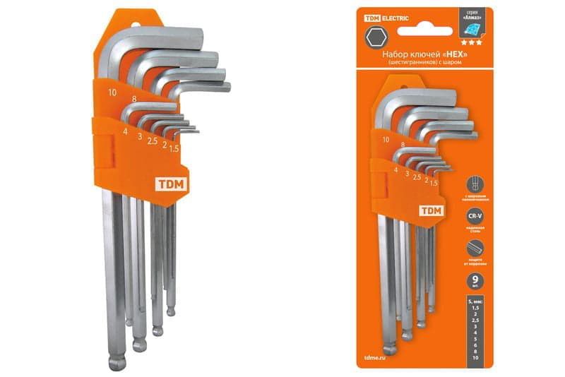 В нашем магазине «Главэлектрика» в Красноярске, вы можете приобрести товар: «Набор ключей имбусовых TDM HEX (шестигранники), 9штук 1.5-10мм, короткие, CR-V сталь "Алмаз" » с доставкой по г. Красноярск .