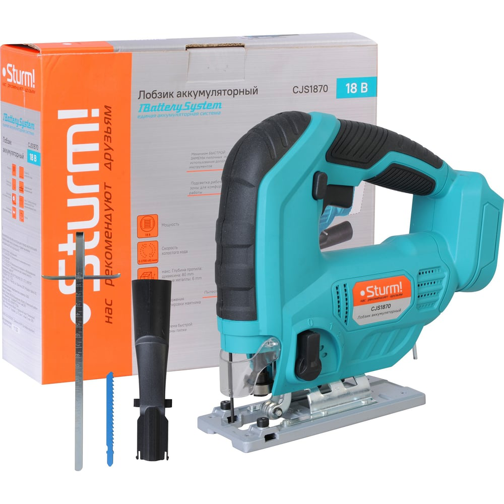 Аккумуляторный лобзик Sturm! CJS1870 незаменим для выполнения пильных работ вдали/в отсутствии источника электроэнергии.Благодаря выбору из четырех положений маятникового хода можно подобрать оптимальную амплитуду пиления дерева, пластика, металла.Система быстрой фиксации полотна для быстрой замены пилочки на новое или для работы с другим материалом. Замена пильных полотен происходит без использования стороннего инструмента.
