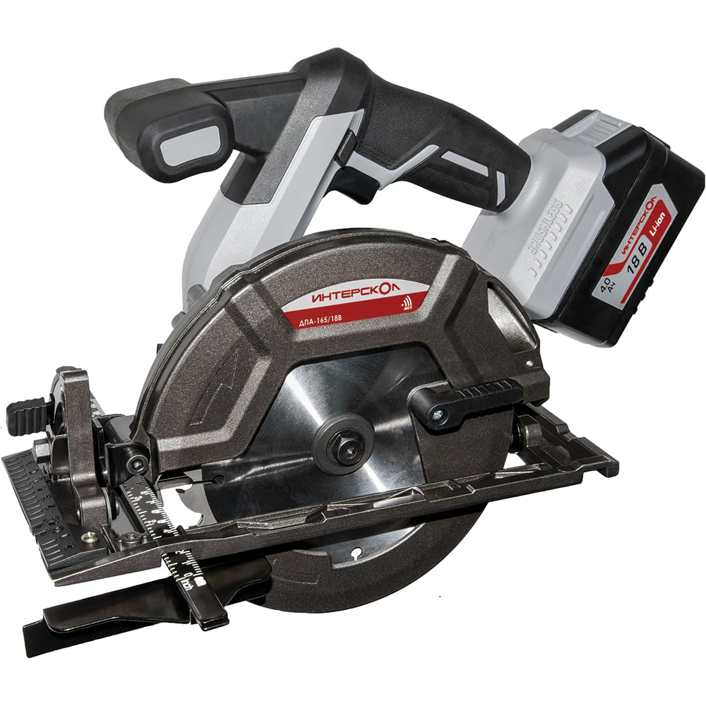 Аккумуляторная дисковая пила ИНТЕРСКОЛ ДПА-165/18В 577.4.1.70 предназначена для поперечного, продольного и комбинированного пиления древесины, фанеры, ДСП, ОСП и т.д. Комплектуется литий-ионным аккумулятором. Бесщеточный двигатель способствует высокой производительности. Функция блокировки шпинделя упрощает замену пильного диска. Литая опорная подошва из алюминиевого сплава и металлическая защита диска повышают точность распила и безопасность в эксплуатации.