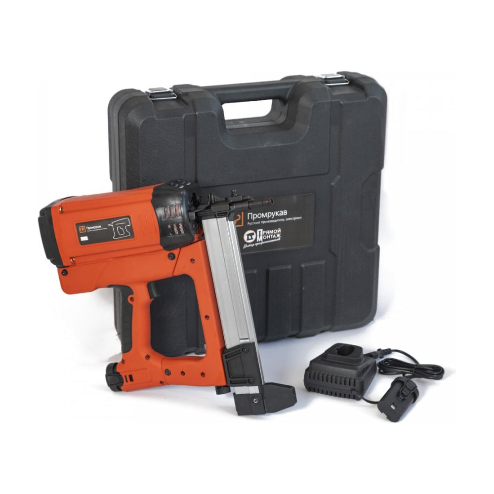 Газовый монтажный пистолет "Промрукав" предназначен для прямого монтажа различных изделий к основанию из бетона, металла или кирпича. Для данной модели монтажного пистолета не требуется компрессор и подключение к электросети. Область применения — Прямой монтаж распределительных коробок, пластикового и металлического крепежа, текстильных и металлических лент, и прочих инженерных систем, монтаж направляющих для гипсокартона и натяжных потолков, штукатурной сетки, гидроизоляционных мембран и теплоизоляционных материалов, фанеры к полу. Монтажный пистолет и множество аксессуаров уложены в надежный и практичный кейс, который защитит инструмент от грязи и пыли. Вес пистолета с АКБ 2 А-ч составляет — 3,7 кг. Вес кейса с пистолетом, двумя АКБ, зарядным устройством и аксессуарами составляет — 7,6 кг. В комплект входит: кейс, АКБ 2 Ач — 2 шт., ствол диаметров 11 мм., защитные очки, крюк, перчатки, ключ с шестигранной головкой - 3 шт., зарядное устройство, руководство по эксплуатации, гарантийный талон. Используемые размеры монтажных гвоздей от 15-40 мм. Применяемые газовые баллоны — FC165-2-1 и FC165-1-1.