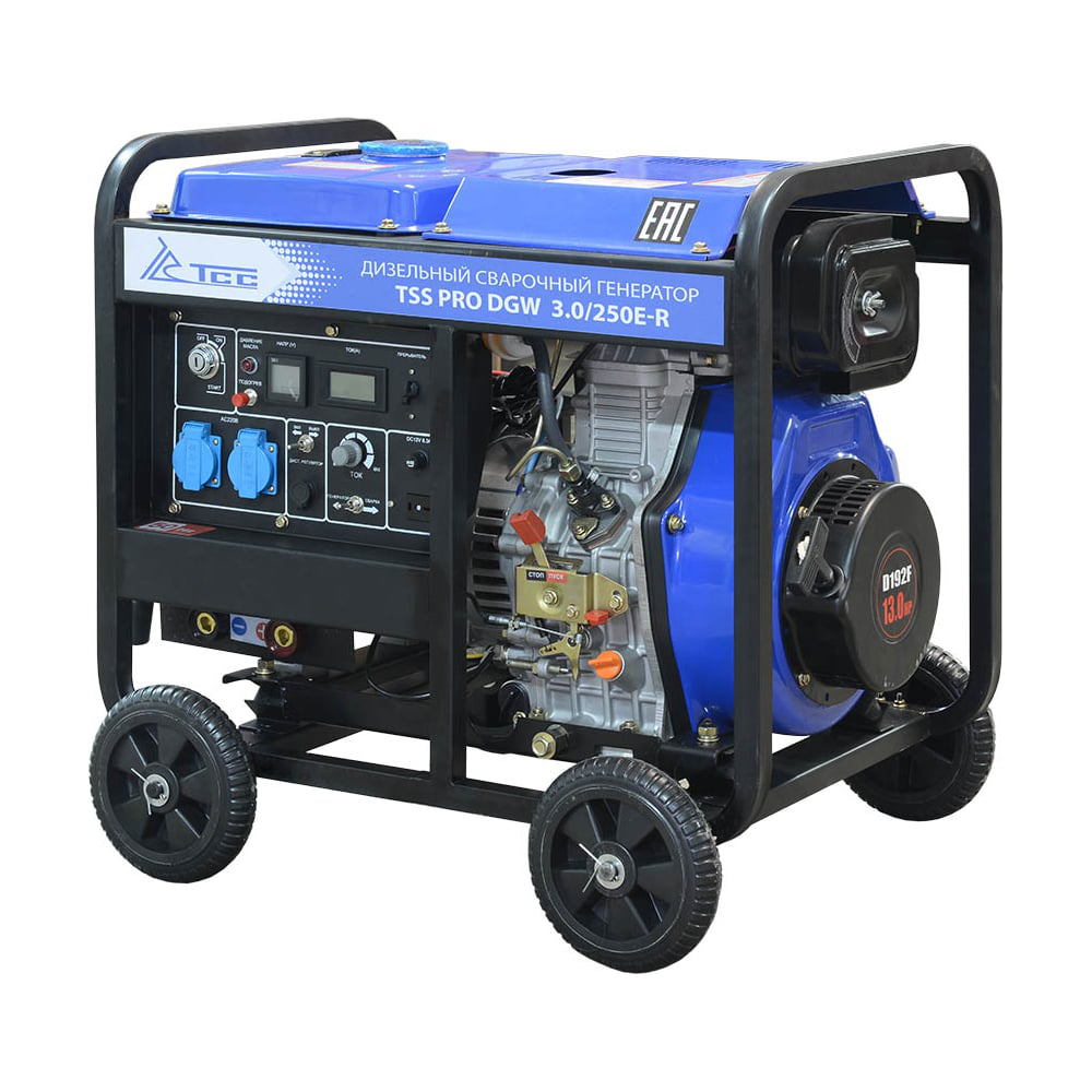 Дизельный сварочный генератор ТСС PRO DGW 3.0/250E-R 022833 предназначен для проведения высококачественной ручной дуговой сварки. Также устройство можно использовать в качестве источника энергии для обычных пользователей. Генератор оснащен колесами и ручкой для удобства транспортировки. На панели расположены две розетки, которые имеют пластиковые крышки для защиты от попадания грязи и влаги.