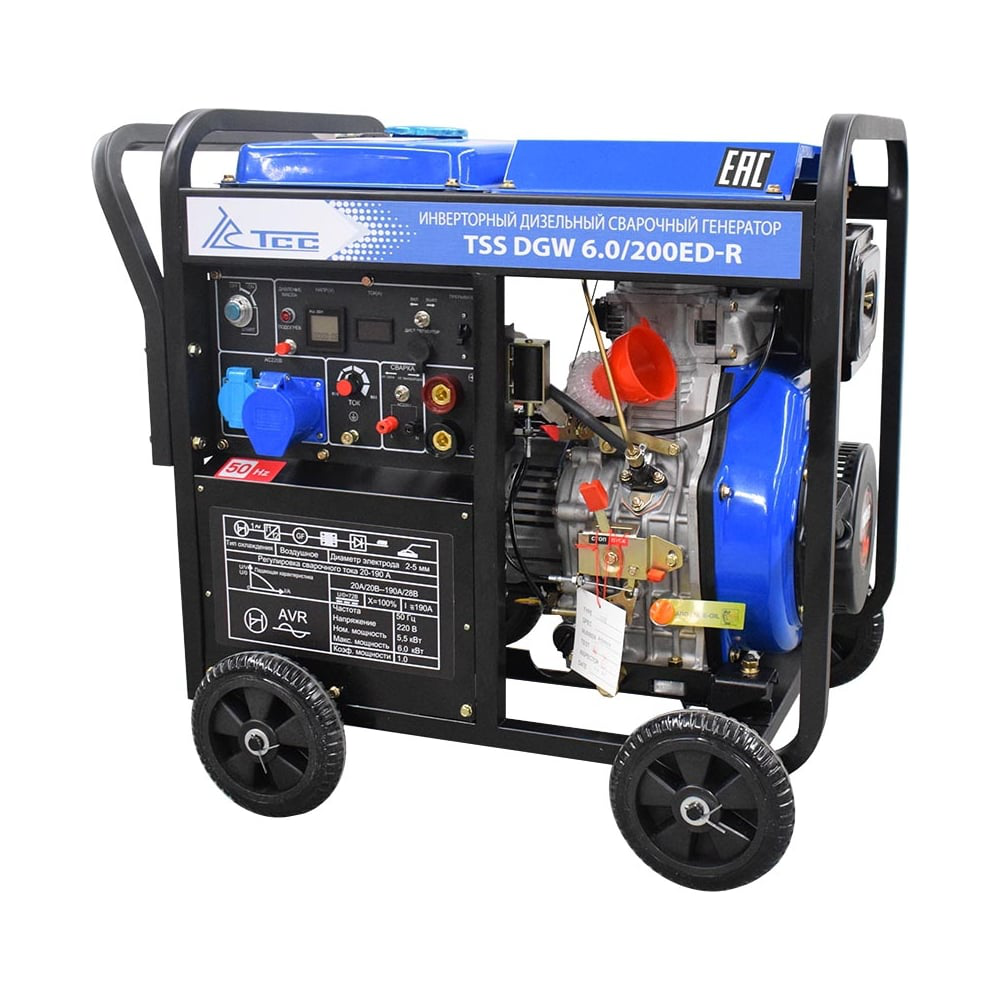 Инверторный дизельный сварочный генератор ТСС DGW 6.0/200ED-R 022837 относится к силовой технике профессионального класса. Агрегат предназначен для осуществления питания потребителей в условиях отсутствия центральной электросети, а также для проведения ручной дуговой сварки. Генератор оснащен колесами для удобства транспортировки. Выполнен на базе мощного дизельного двигателя с воздушным охлаждением.
