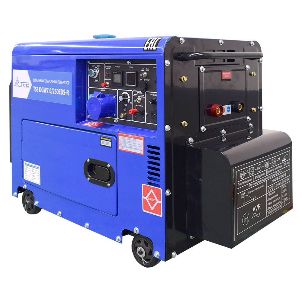 Сварочный дизельный генератор TSS DGW 7.0/250EDS-R — предназначен для проведения Ручной Дуговой Сварки. В этом генераторе сварочный модуль собран по инверторной схеме. Одновременно можно использовать генератор в режиме сварки и в режиме автономного источника электроснабжения. Можно освещать место сварки, подключать электроинструмент - дрель, шлифмашинку, болгарку и т.п. Кроме того, встроенный сварочный инвертор возможно использовать от сети стационарного электроснабжения как обычный сварочный аппарат.