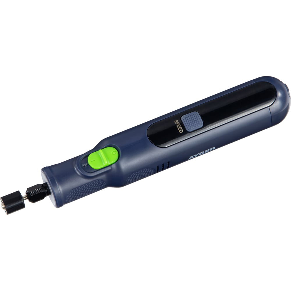 Аккумуляторный гравер AYGER APG8V предназначен для обработки, полировки, гравировки, заточки и множества других задач.Его элегантный "карандашный" корпус в сочетании с регулируемой скоростью в пределах от 5000 до 30000 оборотов в минуту обеспечивает отличный контроль при работе с разными материалами.Цанга размером 3.2 мм позволяет быстро и без усилий заменять оснастку.Литий-ионный аккумулятор с USB-совместимостью может использоваться с другими инструментами этой системы.