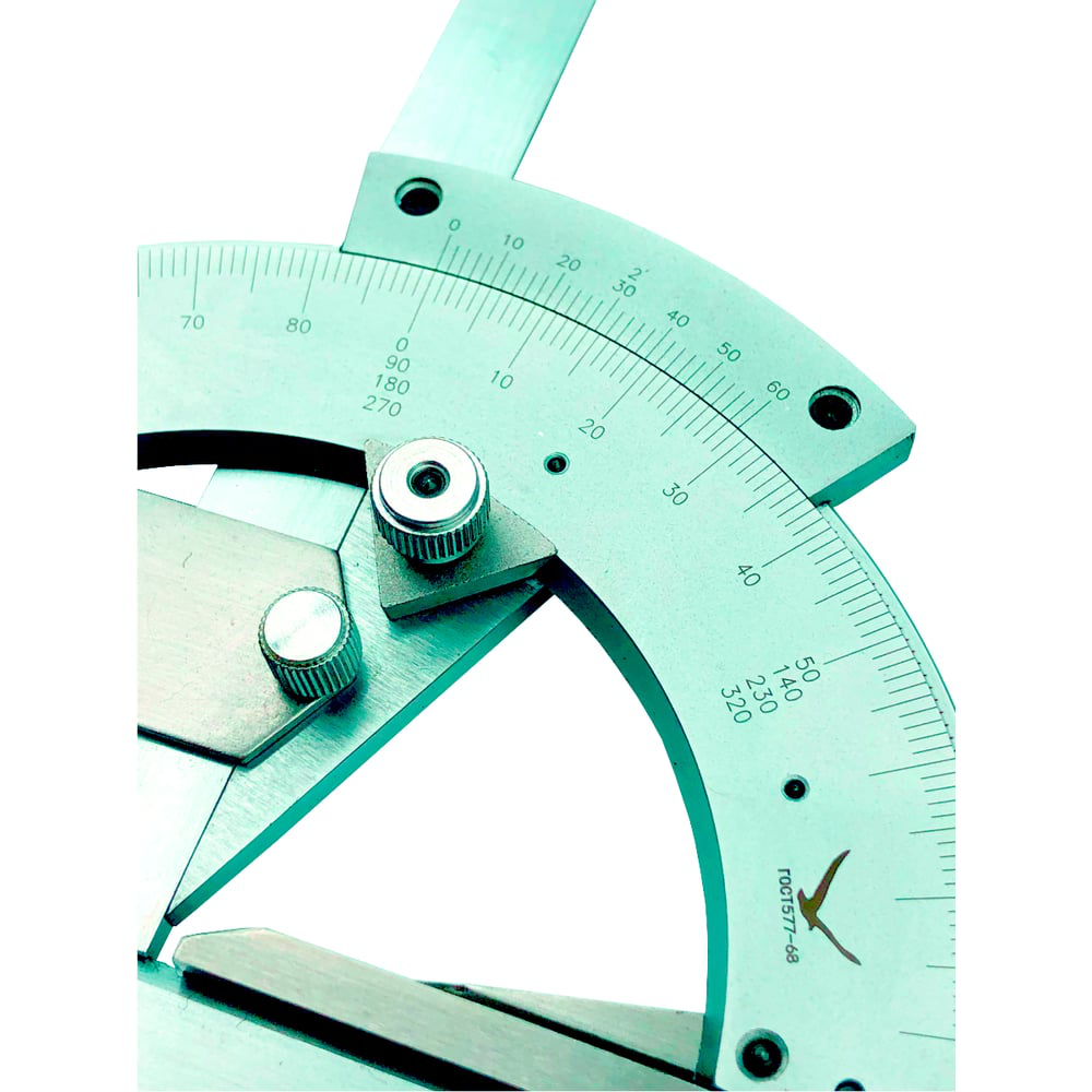 Угломер Буревестник типа 2-2 0-320 гр. 2' ГОСТ 5378-88 180 предназначен для измерения геометрических углов в различных конструкциях, в деталях и между поверхностями (в основном контактным методом), и между удалёнными объектами (оптическим методом). Измерение производится в градусах, на основе линейчатой шкалы, линейчато-круговой шкалы (с механическим указателем или стрелкой), нониуса. Выполнен из прочного материала, который устойчив к деформации.