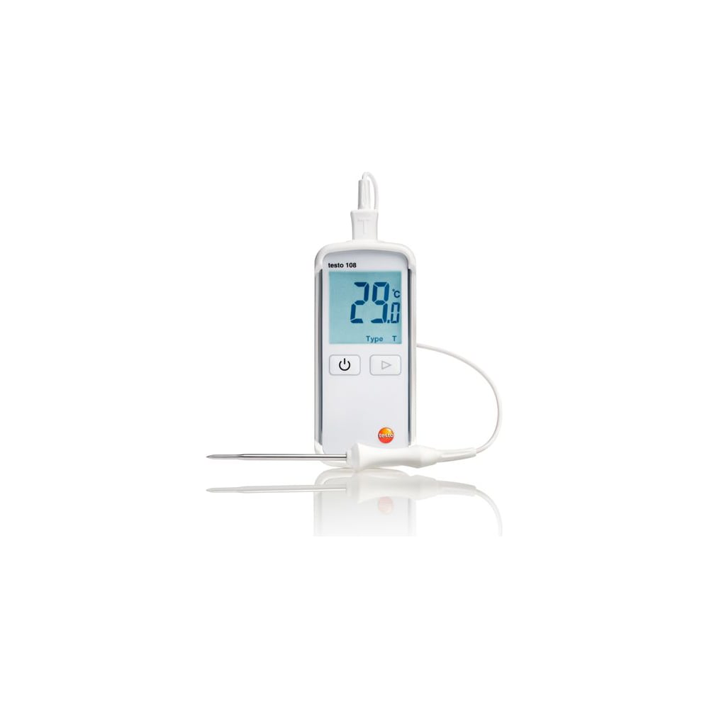 Водонепроницаемый термометр Testo 108 0563 1080 широко используется в пищевой промышленности. Он предназначен для проведения контрольных точечных замеров температуры в процессе транспортировки или хранения продуктов. Прибор прост и удобен в эксплуатации, измерительный наконечник быстро измеряет температуру и не оставляет следов на продуктах. Полученные измерения выводятся на четкий ЖК-дисплей. Устройство работает от трех батареек типа ААА.