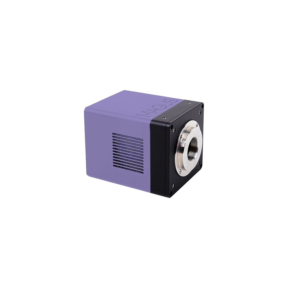 Цифровая камера MAGUS CLM50 разработана для работы в свете люминесценции и по методу темного поля. Камера оснащена сенсором 1,7 Мпикс и формирует реалистичное изображение в разрешении 1600x1100 пикс при работе на объективах 60х и 100х. Видеозапись ведется с частотой 33 кадра в секунду при максимальном разрешении. Видео плавные, с мягкими и незаметными глазу переходами между кадрами. Передвижение препарата отображается в реальном времени, без задержек. Камера обеспечивает удобную работу с подвижными объектами, подходит для проведения демонстраций в аудитории. Камера оснащена интерфейсом USB 3.0. Скорость передачи данных в 10 раз выше, чем у камер с интерфейсом USB 2.0. Высокоскоростная камера рекомендуется для профессиональной работы в лаборатории, исследований или обучения в вузах. Сенсор В камере установлен цветной CMOS-сенсор SONY Exmor с обратной засветкой. Эта технология повышает светочувствительность и улучшает производительность камеры при слабой освещенности. Цветной сенсор обладает меньшей светочувствительностью, чем монохромный, но он незаменим в исследованиях, в ходе которых объекты идентифицируют и классифицируют по цвету. Сенсор большого размера – 1,1''. Физический размер сенсора влияет на качество получаемого изображения: чем он больше, тем чище изображение, больше глубина цвета, шире поле зрения. Пиксель размером 9x9 мкм обеспечивает светочувствительность 4910 при 1/30 с. Чтобы обеспечить максимальное поле зрения без искажений, рекомендуется адаптер с увеличением 1х. Элемент Пельтье Во время длительной работы сенсор камеры сильно нагревается. Из-за этого в изображении возникает тепловой шум, значительно снижающий качество изображения. Для устранения этого негативного эффекта камера оснащена двухступенчатым термоэлектрическим модулем (элементом Пельтье). Он устанавливает температуру на 42 °C ниже комнатной и создает оптимальные условия для длительной работы сенсора без нагрева, поэтому камера подходит для фотографирования на длинных выдержках: изображение ясное, без теплового шума. Затвор Камера оснащена глобальным затвором. Сигнал считывается со всех светочувствительных элементов матрицы одновременно. Быстродвижущиеся объекты видны четко и без ложных оптических эффектов. Изображение при слабой освещенности яркое и информативное, что особо важно для люминесценции. Программные возможности Камера использует программное обеспечение для вывода картинки на внешний экран, фотографирования, видеозаписи, редактирования изображения, определения линейных и угловых размеров объектов и их структур. Перед измерениями программное обеспечение необходимо откалибровать на каждом объективе с помощью калибровочного слайда. Установка Камера устанавливается на микроскоп в канал визуализации при помощи адаптера C-mount из комплекта поставки микроскопа.