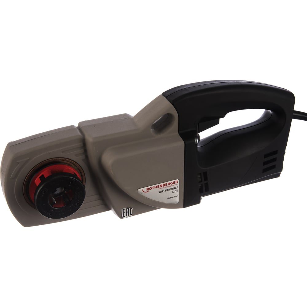 Ручной электроклупп Rothenberger СУПЕРТРОНИК 1250 d= 1/2", 3/4", 1", 1 1/4" 71450 служит для быстрого изготовления прецизионных высокоточных резьбовых соединений на стальных трубах BSPT (правая) D 1/2-1,1/4" в соответствии с нормами. Благодаря компактности устройство можно использовать в местах с затрудненным доступом Резьбонарезной инструмент с легкостью выдерживает повышенную нагрузку Имеет равномерную скорость в любом направлении вращения Резьбонарезную головку можно установить слева/справа Небольшой вес, удобное управление Компактный корпус редуктора