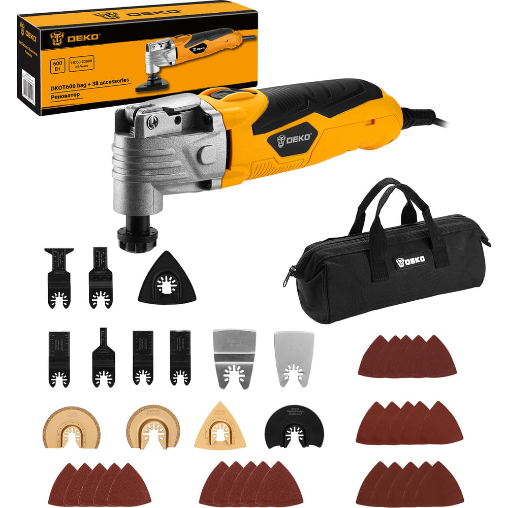 Реноватор DEKO DKOT600 - это универсальный инструмент для дома, сочетающий в себе функции таких электроприборов как лобзик, болгарка и шлифовальная машинка. В зависимости от используемой насадки, изделие может легко и точно резать под разным углом, вырезать отверстия, распиливать небольшие заготовки, шлифовать, полировать, а также зачищать различные поверхности. Система быстрого зажима без инструмента позволяет менять рабочую оснастку за считанные секунды. Наличие сумки облегчает транспортировку и хранение. Применение: Сухая шлифовка небольших поверхностей; Распилка древесины и древесных материалов, гипсокартона, пластика, цветных металлов, гвоздей и скоб; Очистка поверхностей, например, удаление клея, повторное окрашивание напольного покрытия и т.д.