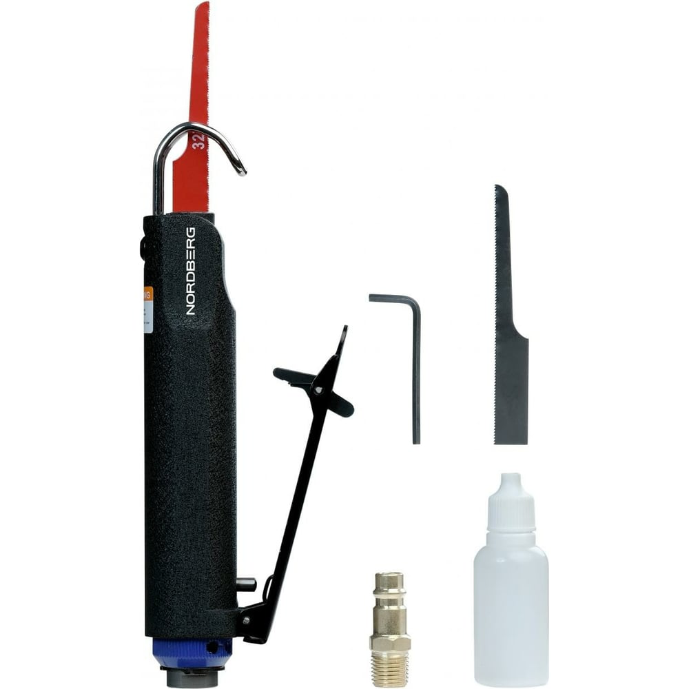Пневмолобзик NORDBERG NP6011 предназначен для пропиливания материала толщиной 2 мм. Имеет выключатель с предохранителем от случайного включения. В комплекте идут 2 пилки.
