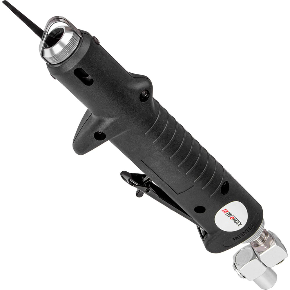 Прямой композитный пневмолобзик Byemax BG-0831 часто используется в автосервисах, слесарных мастерских и кузовных СТО. Имеет прочный корпус и рукоятку с рифленой поверхностью для надежного хвата. Модель работает на сжатом воздухе, что предусматривает внушительный рабочий ресурс и возможность длительное время работать без остановки.