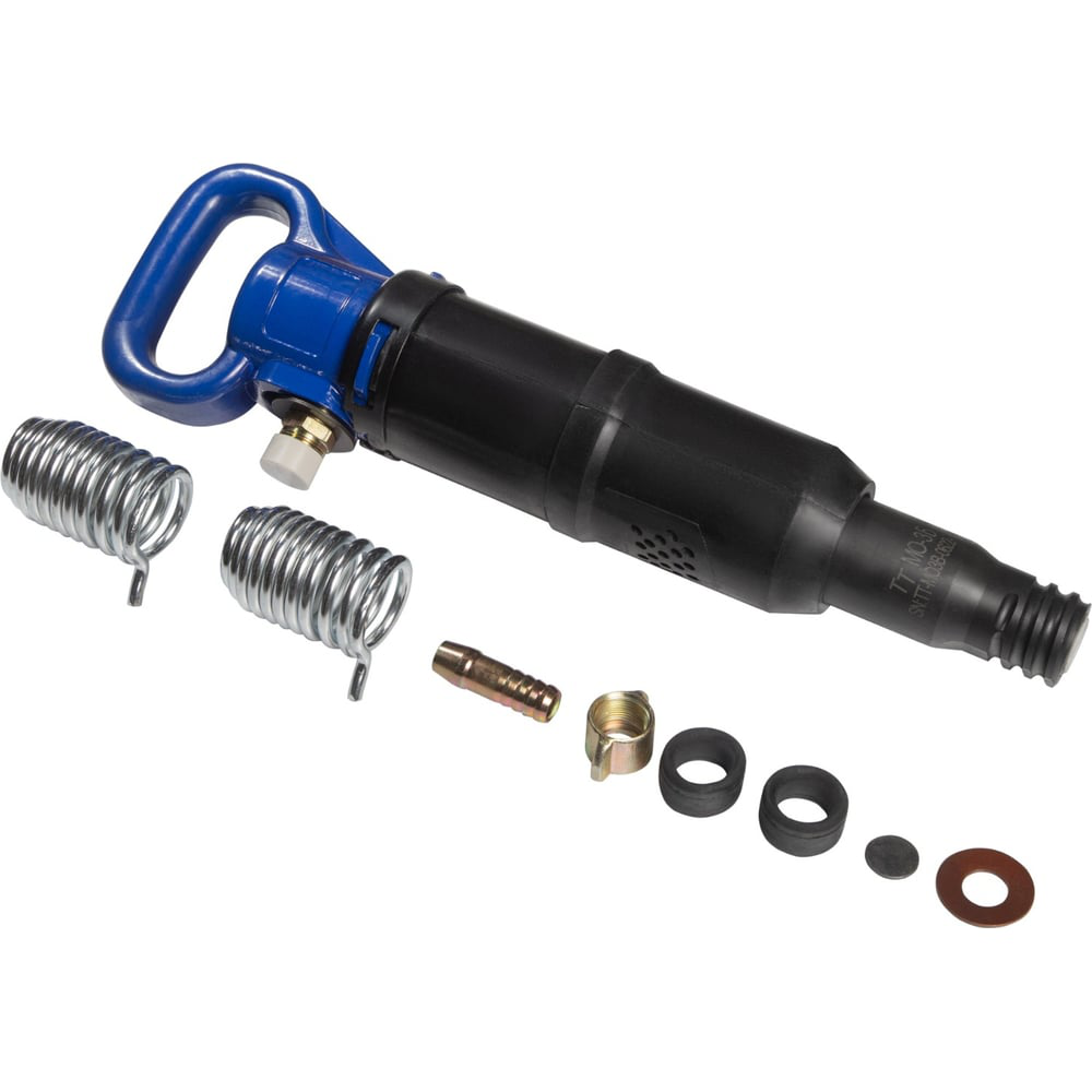 Пневматический отбойный молоток JSD МО-3Б используется при работах, где нужна большая энергия удара. Металлическая конструкция устойчива к механическим повреждениям. Края рукоятки тщательно сглажены, что обеспечивает комфортный хват. Хвостовик имеет специальную пружину, которая гасит вибрацию при работе.