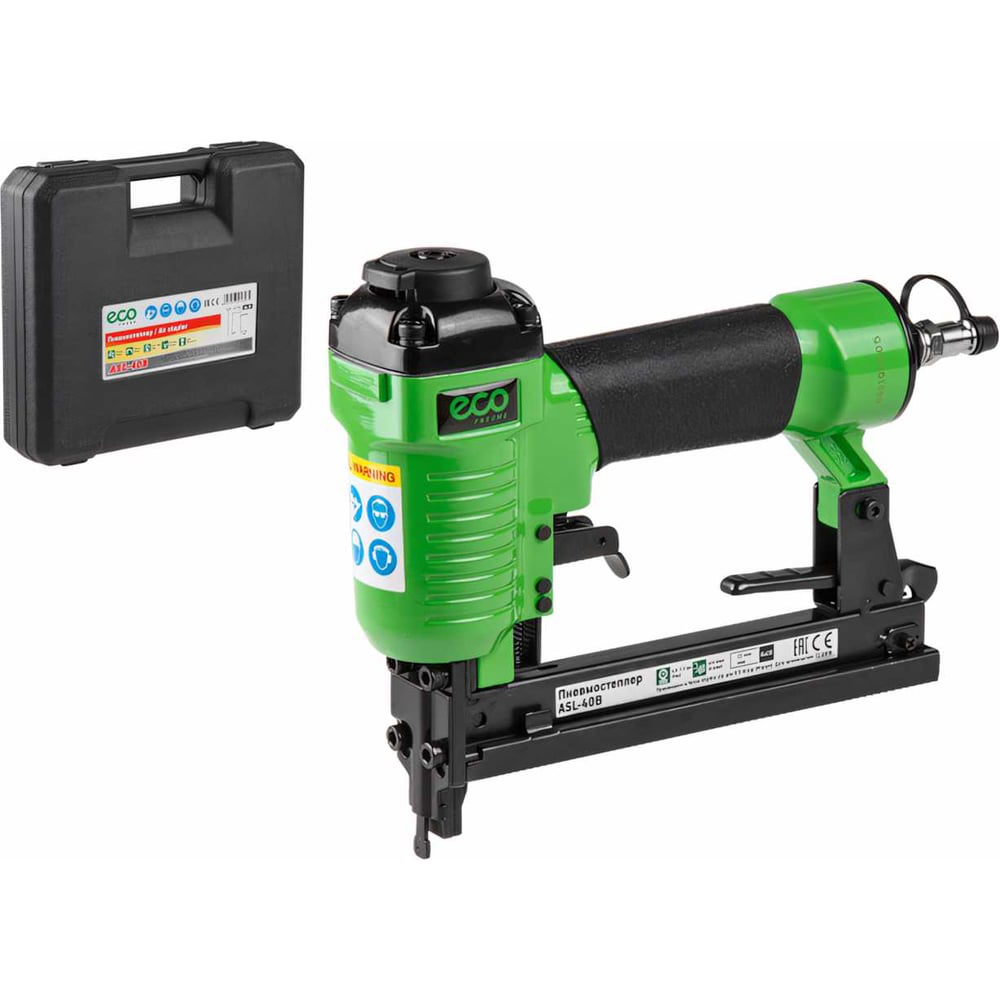 Скобозабивной пневматический пистолет ECO ASL-40B подойдет для работ в домашней мастерской или на мебельном производстве. Прорезиненная рукоятка облегчает захват и не скользит в руке. Работа на сжатом воздухе обеспечивает больший рабочий ресурс по сравнению с электроинструментом.
