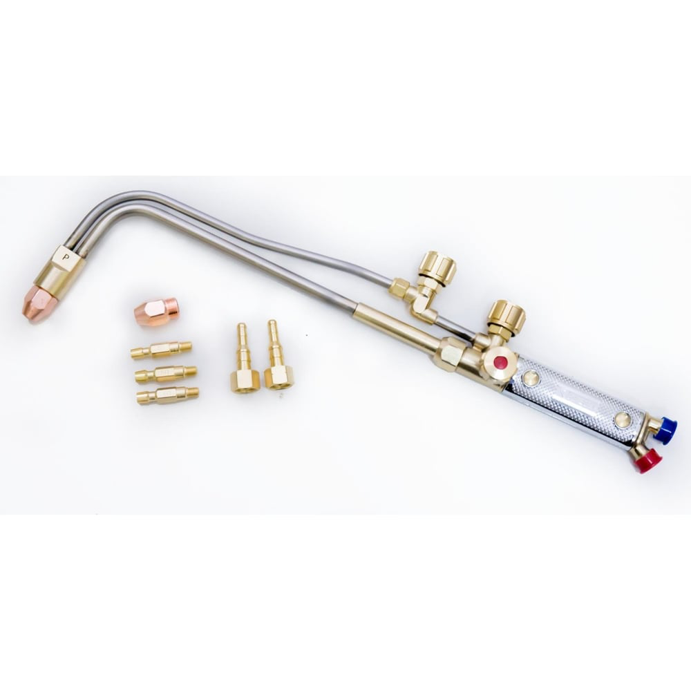 Газокислородный инжекторный резак предназначен для ручной газокислородной разделительной резки нелегированных и низколегированных, низкоуглеродистых сталей толщиной до 300 мм. В качестве горючего газа применяется пропан-бутан в смеси с кислородом Благодаря длине трубок работник всегда находится на безопасном расстоянии от зоны резки. Небольшой собственный вес облегчает удержание инструмента и позволяет работать дольше без усталости.