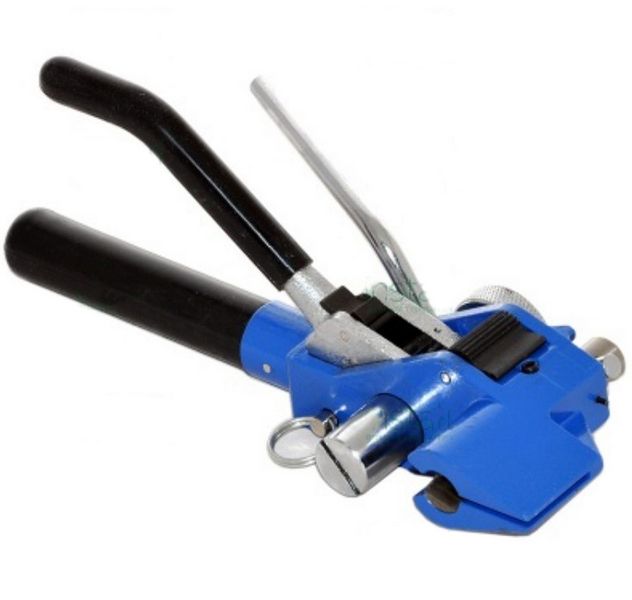 Используется для резки и натяжения крепежной ленты С201, С202, С304. Инструмент имеет храповый механизм. Ручка ножа исполнена из прочной стали, покрыта резиновой оболочкой, что уменьшает вероятность соскальзывания руки во время монтажа и облегчает процесс обрезки ленты.