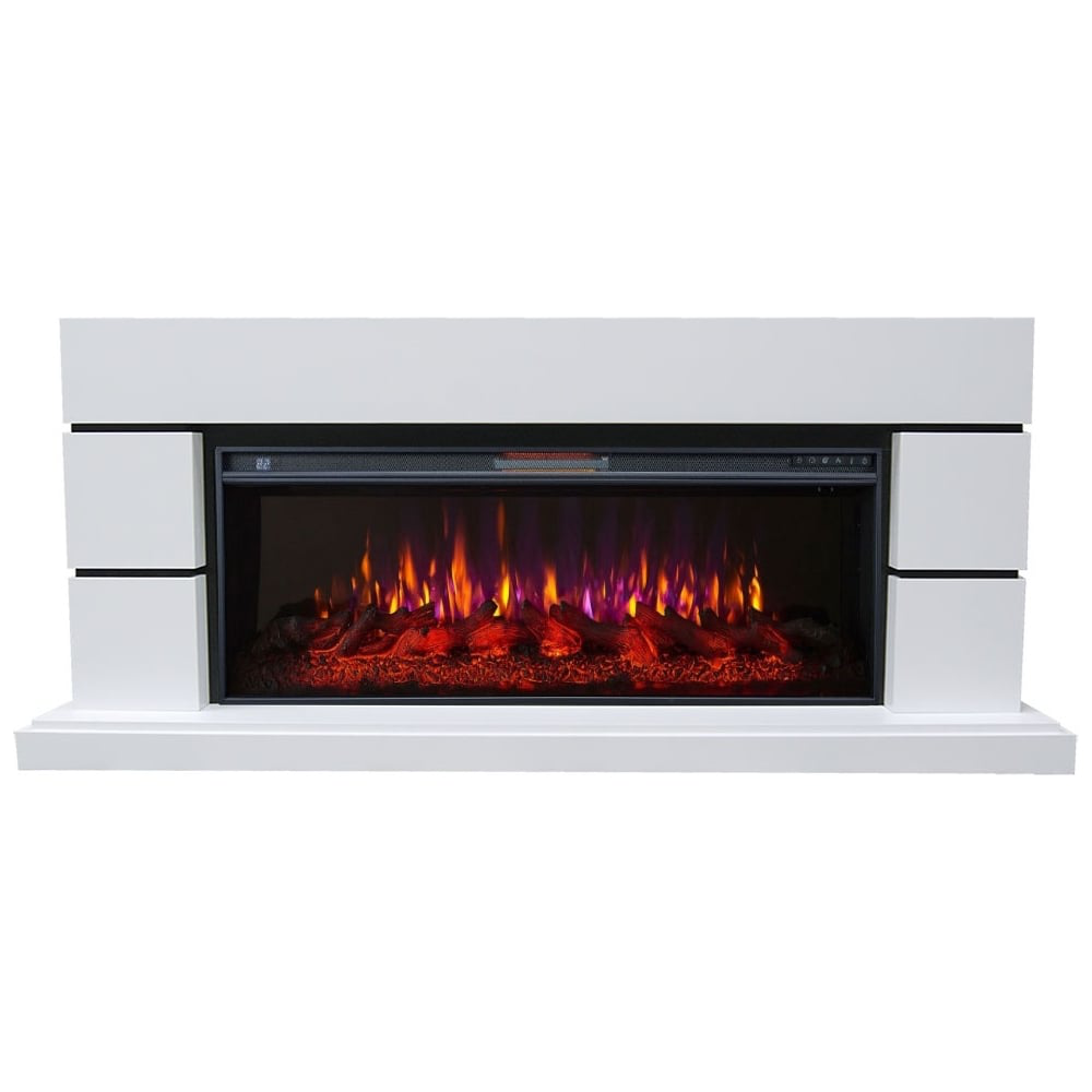 Каминокомплект InterFlame Nord ЕС с Freespace50 белый имеет потрясающий эффект пламени. Муляж дров, выполненный по слепку настоящих дров, расположенный за прямым стеклом. Новый кварцевый обогреватель с функцией «климат-контроль» спрятан в верхней части очага, обеспечивает обогрев в холодную погоду, а что самое главное – не сжигает кислород в помещении.