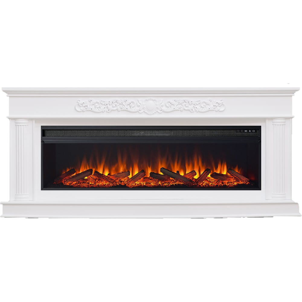 Портал в насыщенном белом цвете идеально подойдет к мебели цвета натурального дерева в классическом стиле. Кроме декоративной лепнины и колонн на фасаде, портал украшен золотой патиной. Изделия с патиной всегда выглядят дорого и роскошно. Благодаря элегантному дизайну, электрокамин выглядит как настоящая семейная реликвия, которая может собрать вокруг себя всю семью. В комплекте идет современный линейный очаг Pulsar 60, который сочетает стильный дизайн и эффективную систему обогрева. Реалистичный муляж дров и звуковая имитация потрескивания дров создают иллюзию натурального дровяного камина. Яркость пламени можно регулировать - доступно 4 возможных варианта подсветки дров и 4 варианта цвета пламени. Чувствительный термостат поддерживает комфортную температуру воздуха с высокой точностью. Управлять работой камина можно с помощью пульта ДУ или кнопок, расположенных на фронтальной панели очага.