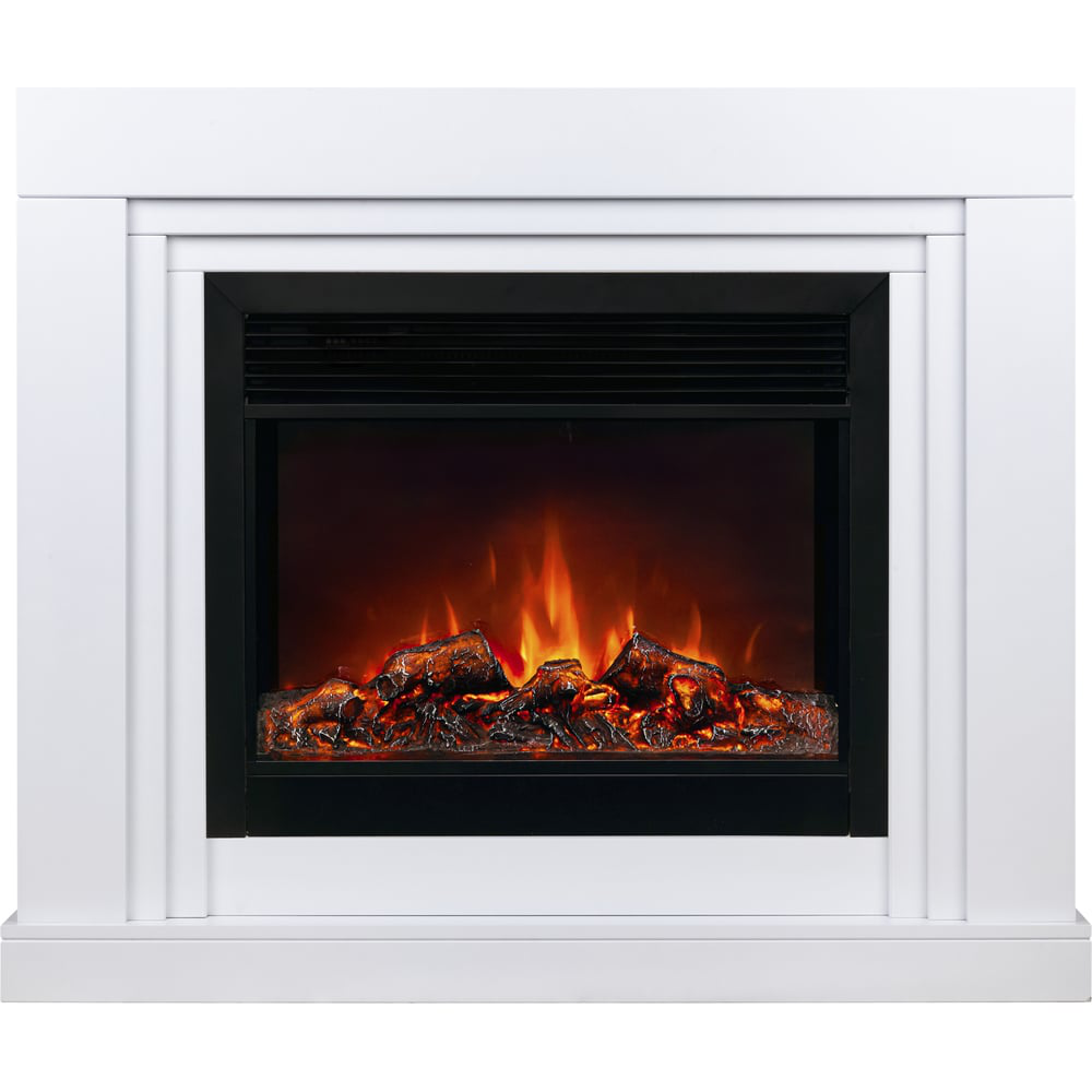 Каминокомплект RealFlame STANLEY 26 WT MOONBLAZE BL - отличает чистота форм и строгость линий. Лаконичный и сдержанный дизайн обрамления сосредотачивает все внимание на очаге и позволяет вписать камин в большинство интерьеров. Задняя стенка очага имеет зеркально-матовое покрытие, что визуально увеличивает глубину топки и делает пламя более реалистичным.Очаг MOONBLAZE BL с потрясающим эффектом пламени и муляжом прогоревших дров расположенных за стеклом. С помощью регулятора яркости можно задать желаемую яркость пламени. Пульт дистанционного управления в комплекте.Благодаря широкой внешней рамке и универсальному дизайну, очаг идеально подходит как для установки в каминные порталы любого стиля, так и для встраивания в стенную нишу.Очаг с функцией обогрева. 2 уровня регулировки мощности обогрева. Мощность обогрева: 0,75/1,5 кВтТаймер отключенияЗащита от перегреваРегулировка яркости пламениЗвуковой эффектВнутренняя стенка: зеркальнаяКорпус: черный