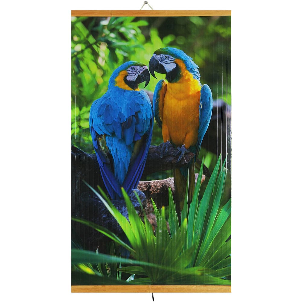 Инфракрасный гибкий настенный обогреватель для квартиры и дачи Домашний Очаг Попугаи ИКОДО-ТР предназначен для дополнительного обогрева помещений в холодное время года. Он не сушит воздух и не сжигает кислород. Обогреватель-картина с рисунком не только подарит тепло и уют дому, но и украсит его. ИК волны аналогичны солнечным лучам и воспринимаются телом человека как приятное тепло, грея мягко и не обжигая. Прибор отлично подойдет для использования на даче, балконе, в квартире, особенно в подростковых комнатах в стиле лофт. Он идеален для помещений площадью до 15 кв.м. Пленочный обогреватель-картина закрепляется на стену при помощи дюбеля и шурупа (входят в комплект).
