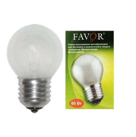Лампа накаливания Favor шарик Р45 60Вт E27, 8109024 - это классическая лампа накаливания, которая создаст уютный и теплый свет в вашем доме. Со стандартным цоколем E27, она легко устанавливается в любой подходящий светильник. С мощностью 60Вт и формой шарика Р45, эта лампа идеально подойдет для освещения помещений различного назначения. Предназначена для использования в бытовых условиях. Лампа накаливания Favor обеспечит комфортный уровень освещенности и добавит атмосферу тепла и уюта в ваш дом.