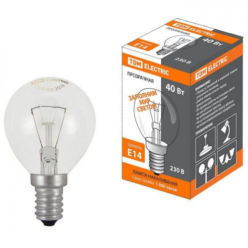 Лампа накаливания "Шар прозрачный" 40 Вт-230 В-Е14 TDM