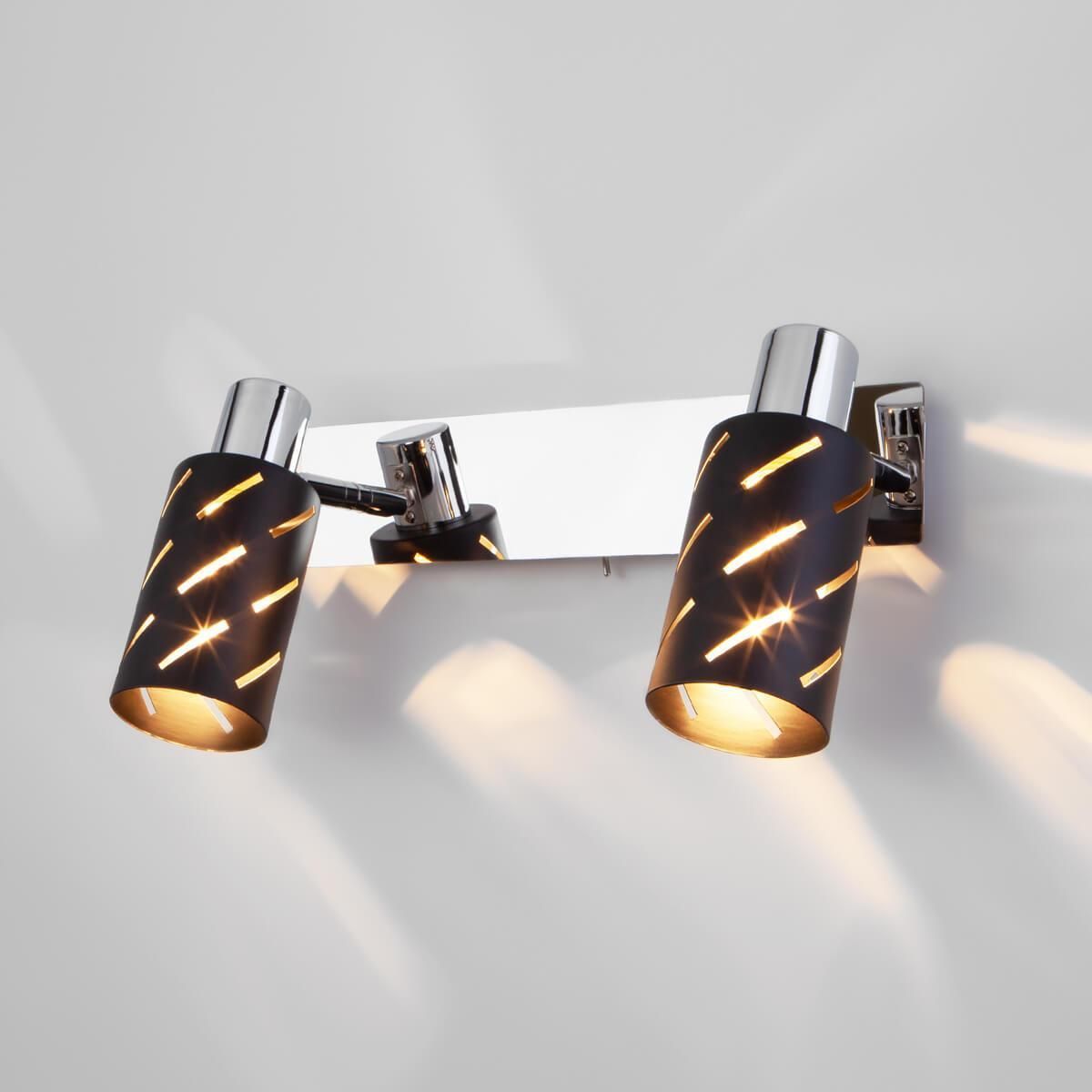 Расширенная гарантия на товар составляет 3 года. поставщик рекомендует использовать лампы накаливания с цоколем E14 для освещения площади 4 м2. Спот Eurosvet Fente 20090/2 черный/хром в современном стиле используется в интерьере Для гостиной с установкой На стену.