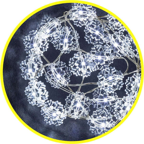 Гирлянда Navigator 14 049 NGF-DM001-20СW-2AA-белые снежинк тип гирлянды - фигурки белые снежинки . материал фигурки - ПВХ. цвет свечения - белый. режим постоянного свечения. питание - 2 АА (в комплект не входят). общая длина - 2,3 м. длина провода до пер