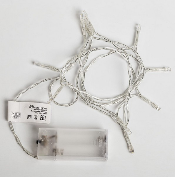Светодиодные лампочки обладают множеством преимуществ перед обычными лампами: они потребляют меньше электроэнергии, имеют длительный срок службы и не нагреваются, что делает использование гирлянды безопасным даже вблизи тканей или других материалов. Батарейка типа 2хAA обеспечит надежное питание гирлянды на протяжении длительного времени.