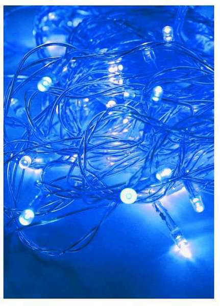 Гирлянда 10.8м (9.3+1.5) 100LED синего цвета с прозрачным проводом и 8 режимами мигания. Имеет степень защиты IP20, что позволяет использовать ее внутри помещений. Создает уютную атмосферу и добавляет праздничное настроение. Идеально подходит для украшения дома или офиса на любое торжество.