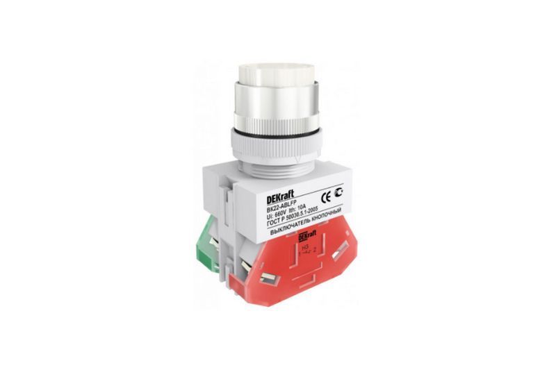 Кнопочный выключатель Dekraft ВК22-ABLFP-WHI 25017DEK - надежное и качественное решение для вашего дома или офиса, которое обеспечит комфорт и безопасность при использовании электрического освещения.