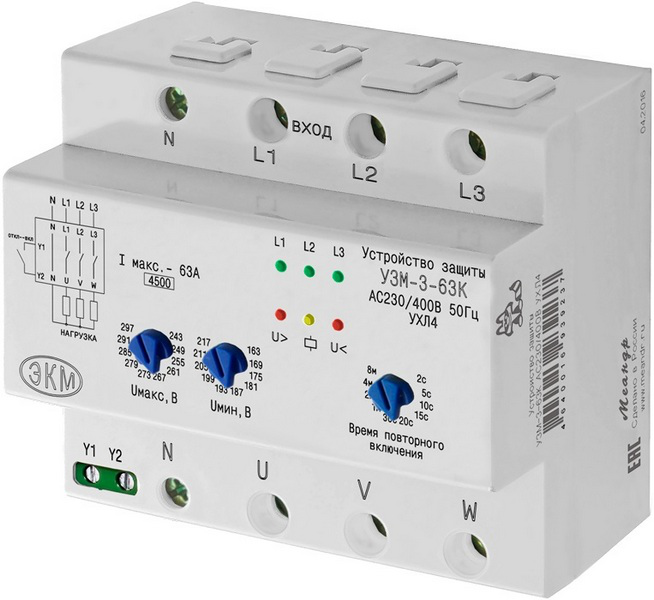 является разновидностью реле контроля трёхфазного напряжения со встроенным мощным трёхфазным поляризованным реле, позволяющим коммутировать большие токи. Устройство содержит функцию контроля частоты сети. Это позволяет использовать его, для включения/выключения нагрузки при работе от автономного генератора, а также для защиты различного электрооборудования от аварий сетевого напряжения. Устройство не требует подключения внешних электромагнитных пускателей для коммутации. Устройство обеспечивает