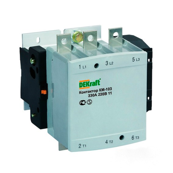 DEKRAFT КМ103-400A-220B-11 КОНТАКТОР 400A 220V 1НО+1НЗ (22162DEK) Номинальный ток, А: 400
