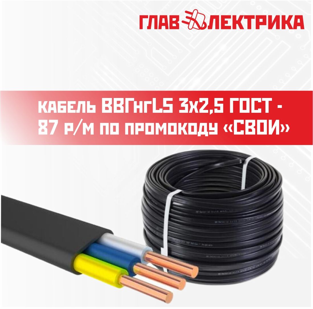 Приди в любой магазин ГЛАВЭЛЕКТРИКА на ул. Богородского 7к4 и просп. Гагарина 101/3 или в центральный офис продаж на ул. Шлиссельбургская 23Б назови кодовое слово "СВОИ" и купи Кабель ВВГнг-LS 3х2,5 ГОСТ всего за 87руб. *