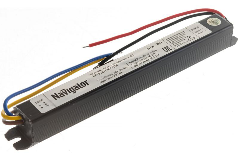 Драйверы Navigator ND предназначены для обеспечения длительной стабильной работы светодиодных ламп и модулей. Драйверы преобразуют параметры входящего сетевого напряжения 220 В 50/60 Гц в постоянное напряжение 12 В необходимое для питания светодиодной продукции. Для управления многоцветными светодиодными лентами в составе драйверов ND производятся контроллеры ND-CRGB. Контроллеры ND-CRGB позволяют управлять интенсивностью света светодиодных лент и создавать статические и динамические световые сц