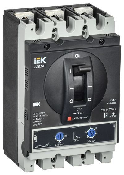 В нашем магазине «Главэлектрика» в Красноярске, вы можете приобрести товар: «ARMAT Автоматический выключатель в литом корпусе 3P типоразмер G 85кА 160А расцепитель термомагнитный регулируемый IEK» с доставкой по г. Красноярск .